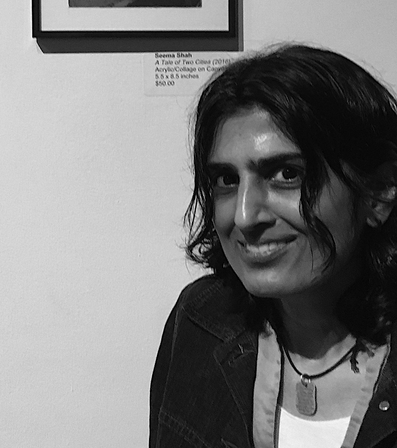 Since 2017, Seema’s art has been shown and collected nationally and internationally. She was a recipient of The Beaumont Studios’ Artist To Watch Award 2022 and a highly commended artist in the 2022 & 2023 Contemporary Collage Magazine Awards. Her first solo show was in April 2023 at The Beaumont Studios in Vancouver, and her second solo show is taking place Feb-Mar 2024 at The Smallhouse Gallery in the UK.